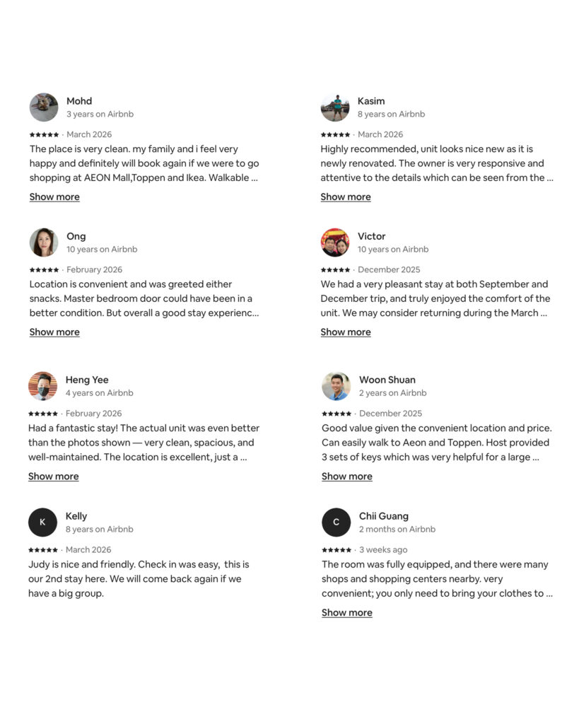 Our homestay at Tebrau City is located in one of the most convenient areas in Johor Bahru: